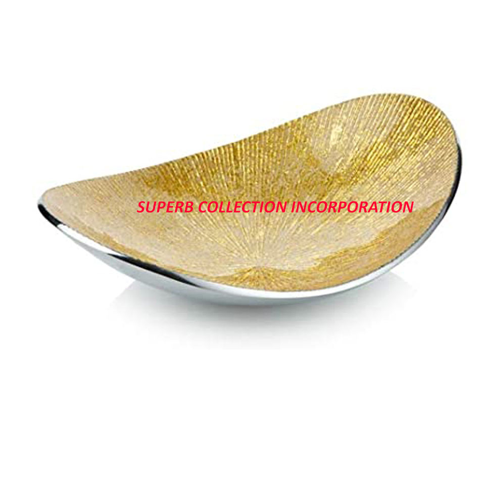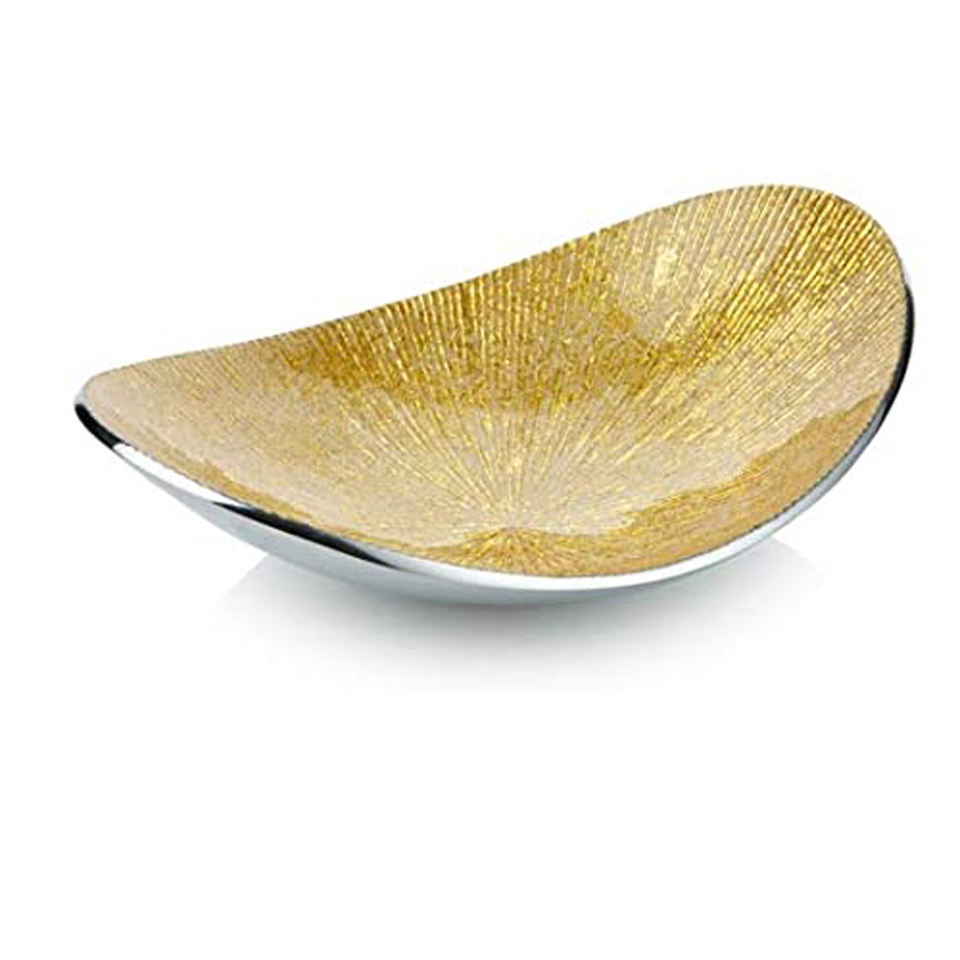 จานผลไม้รูปไข่เคลือบสีทองงานแฮนด์เมด