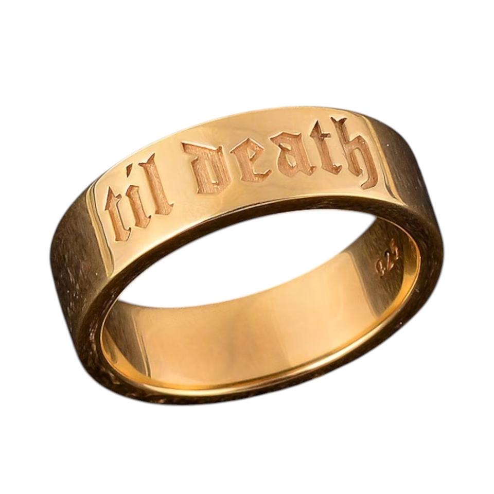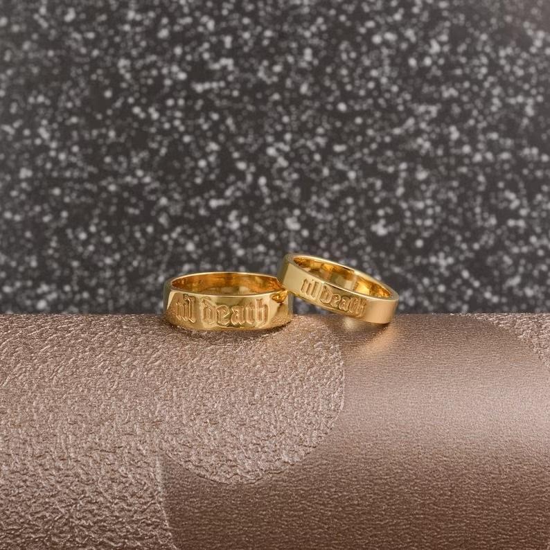 Gold Enamel Til Death Dainty Silver Band Ring Hot Selling Trending Stacking Wedding Anniversary & Promise Invisible Classic