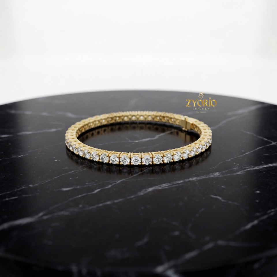กำไลข้อมือเพชรคลาสสิกสีทอง ประดับเพชรเลี้ยงในห้องปฏิบัติการ ชุบเงินสเตอร์ลิง ระยิบระยับตลอดวง ของขวัญสำหรับงานฉลองครบรอบ งานแต่งงาน สำหรับผู้หญิง