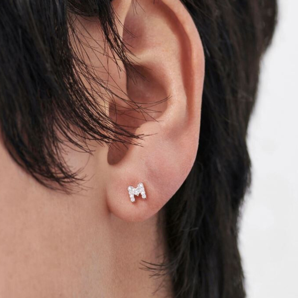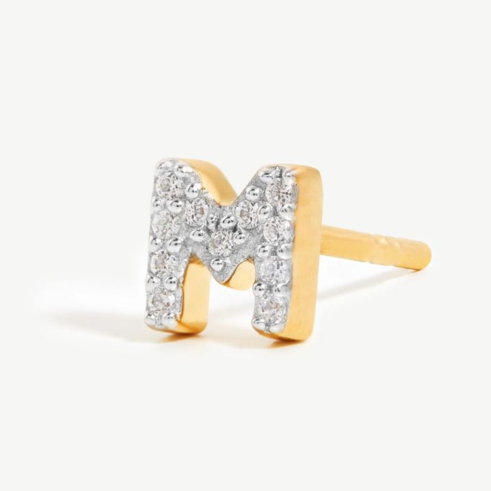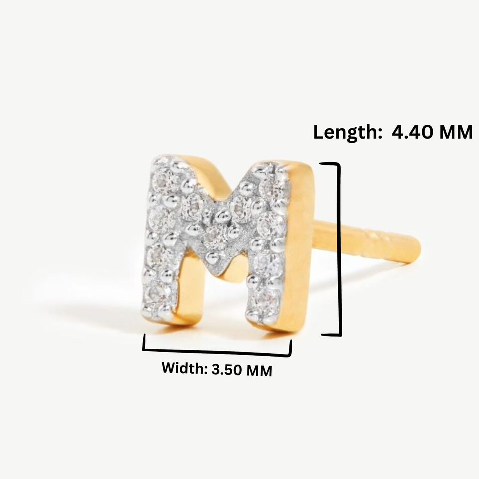 Women's Luxury Gold Filled Initial M Stud Earrings with Zircon Stone for Wedding Anniversary Party Gifts-Fine Fashion Jewelry