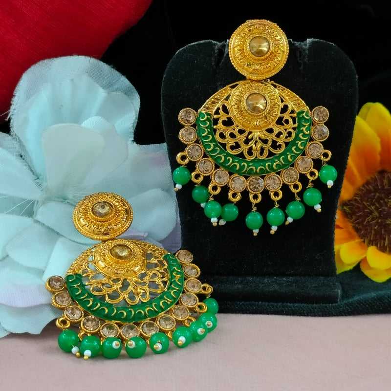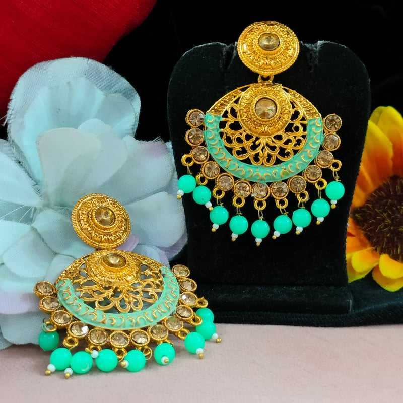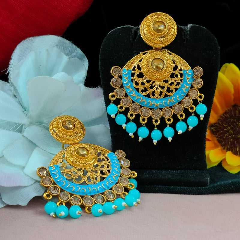 ต่างหูห้อยระย้าแฟชั่นอินเดียสำหรับผู้หญิง Vjoshijewels ตกแต่งด้วยอะคริลิกสีทองประดับมุกเลียนแบบ Kundan สำหรับงานเทศกาล งานแต่งงาน และงานพิธีการ