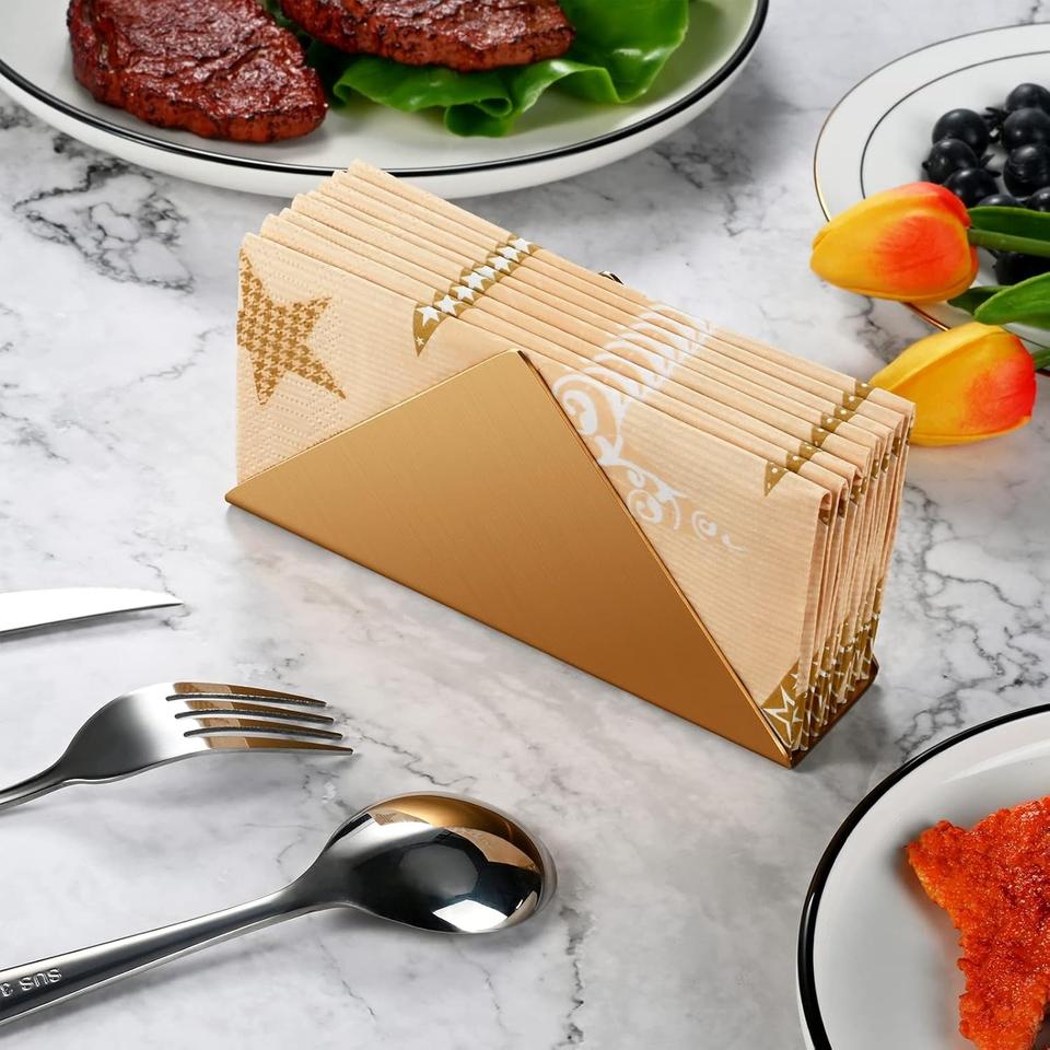 ที่ใส่ผ้าเช็ดปากสแตนเลสเคลือบทอง ดีไซน์สามเหลี่ยมทันสมัย ฐานมั่นคง ใช้งานง่าย จัดระเบียบบนโต๊ะอาหารอย่างมีสไตล์