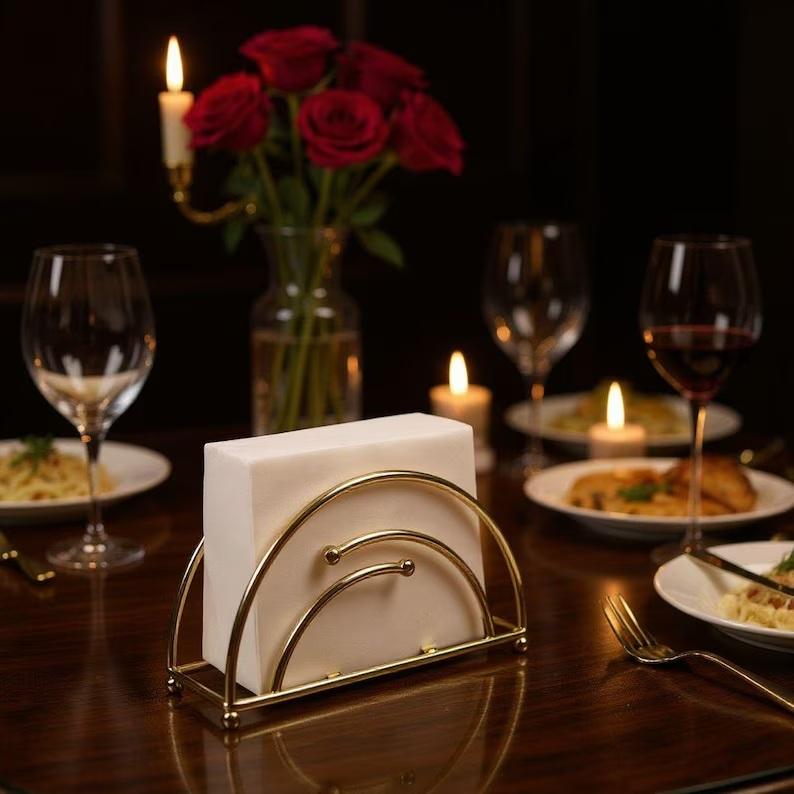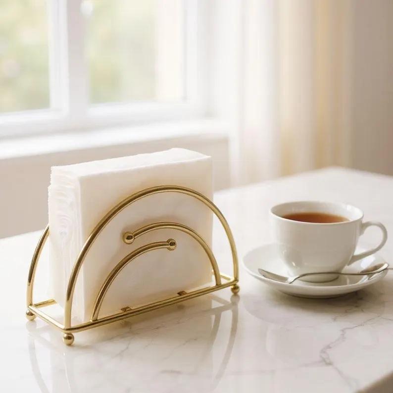 ที่ใส่ผ้าเช็ดปากสแตนเลสเคลือบทอง ดีไซน์โค้งหรูหรา ฐานมั่นคง ใช้งานง่าย ที่จัดระเบียบบนโต๊ะอาหารระดับพรีเมียม