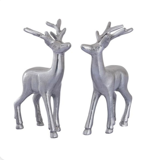 เครื่องประดับรูปสัตว์ทำจากอลูมิเนียมรูปปั้นกวางทำจากโลหะรูปปั้นกวางสำหรับตกแต่งบ้านชุดห้องนั่งเล่นรูปปั้นกวางเรนเดียร์2ชิ้น