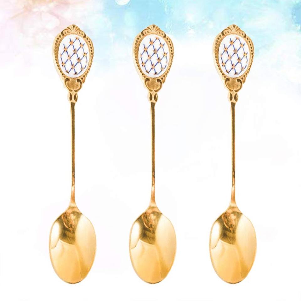 ช้อนชาออกแบบเสร็จสีทองเครื่องใช้ที่หรูหราและทันสมัยเหมาะสำหรับโต๊ะรับประทานอาหารและห้องครัวที่จำเป็น