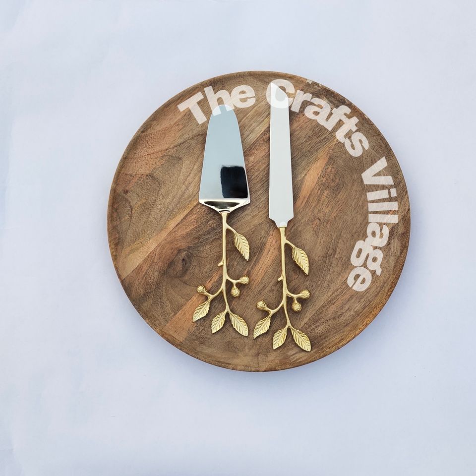 ชุดมีดและที่ตักเค้กโลหะเคลือบทอง ทนทาน เป็นมิตรกับสิ่งแวดล้อม ชุดอุปกรณ์เค้ก 2 ชิ้น สำหรับใช้ในบ้านและร้านอาหาร