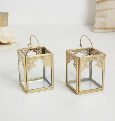 ชุดโคมไฟสองดวงทำจากโลหะสีทองสำหรับตกแต่งโต๊ะอาหารมุสลิมสำหรับตกแต่งโต๊ะอาหารเทศกาลอีดมูบารักรอมฎอน