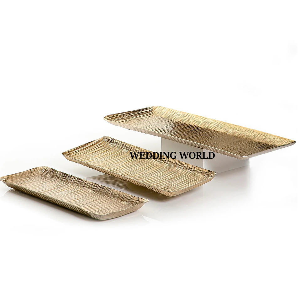 ชุดถาดช็อคโกแลตสำเร็จรูปสีทองสามถาดทรงกลมตกแต่งหรูหราใหม่