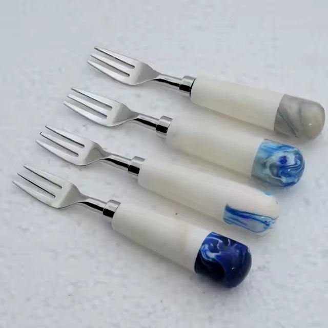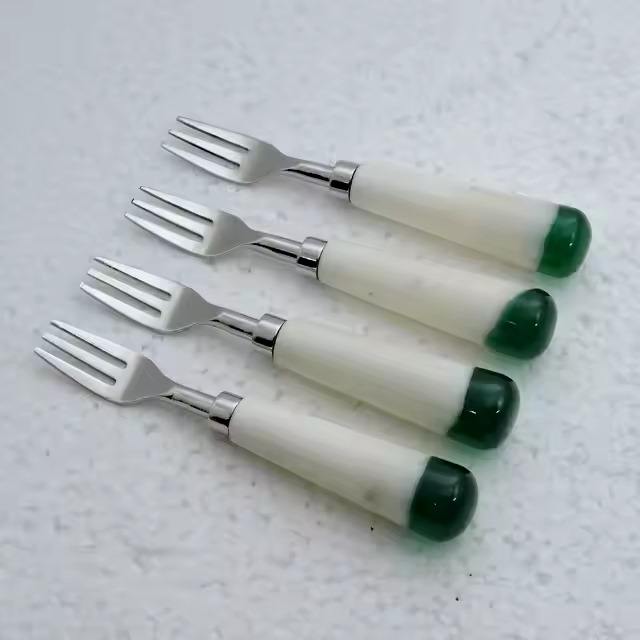 ชุดช้อนส้อมสแตนเลสเคลือบทอง ชุดเครื่องครัวโลหะ ชุดช้อนส้อม ด้ามจับเรซิ่นสีเขียวเข้มแบบราชวงศ์ ชุดช้อนส้อมสำหรับวางบนโต๊ะ