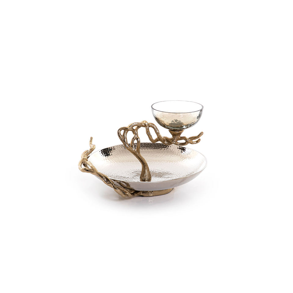ชุดถาดรองขนมโลหะทุบสีทองห้าชามพร้อมลายใบไม้อุปกรณ์ตกแต่งและเครื่องใช้บนโต๊ะอาหารแบบปรับแต่งได้ทันสมัย