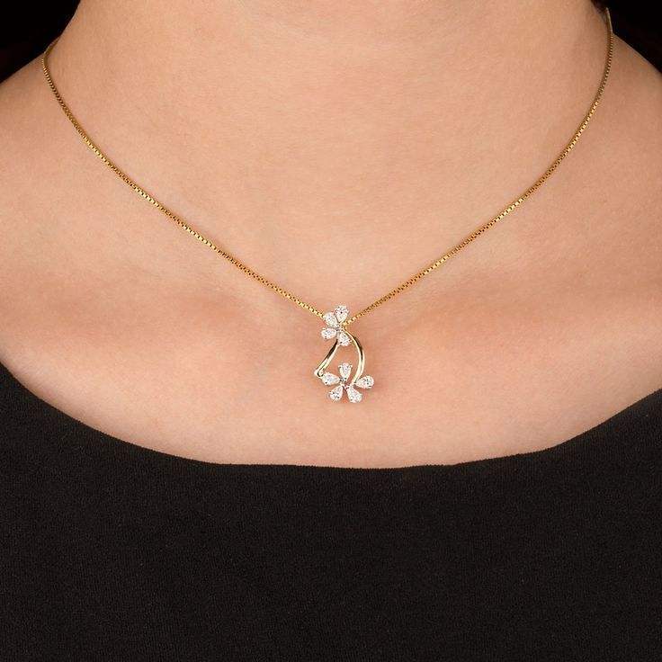 สร้อยคอจี้เพชรลายดอกไม้สีทองสำหรับผู้หญิง – จี้เพชรทรงมาร์คีส์และทรงกลมแบบคลัสเตอร์ – ของขวัญเครื่องประดับเพชรที่หรูหรา