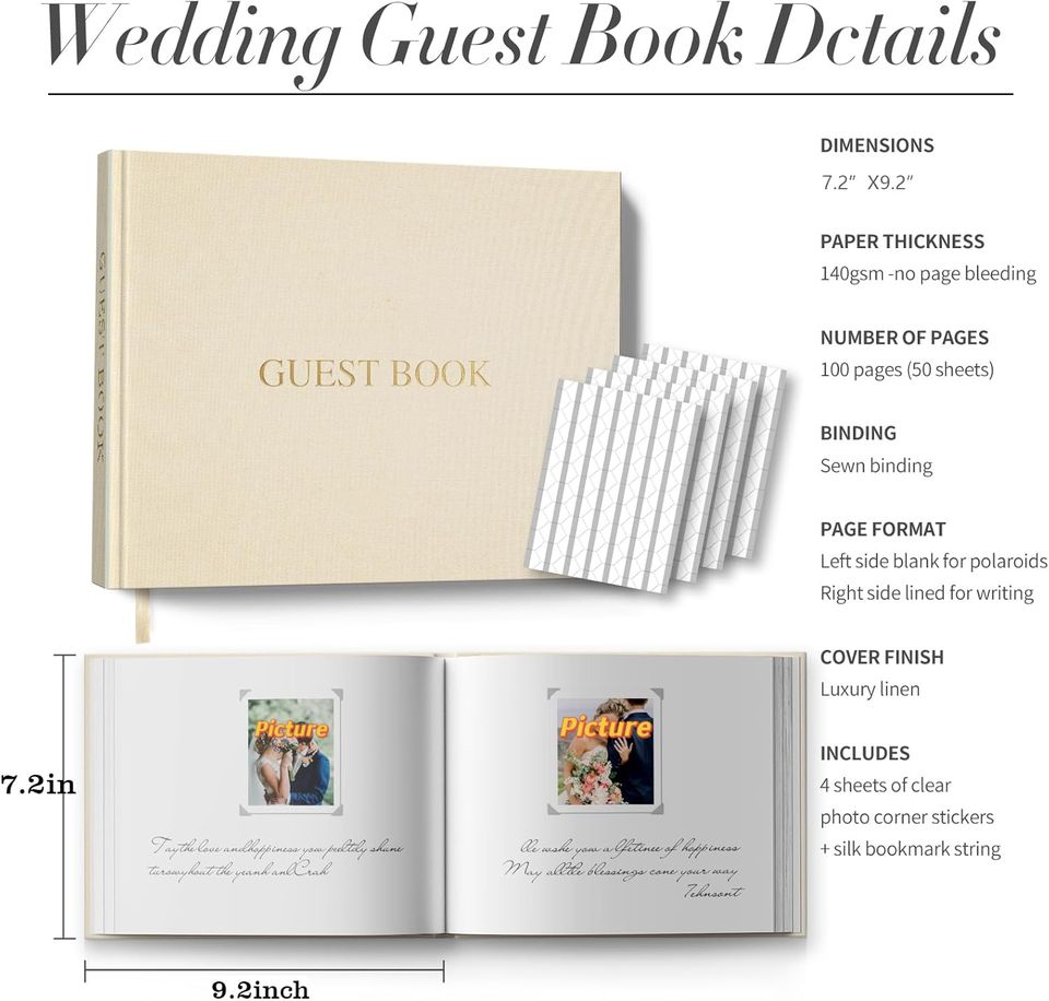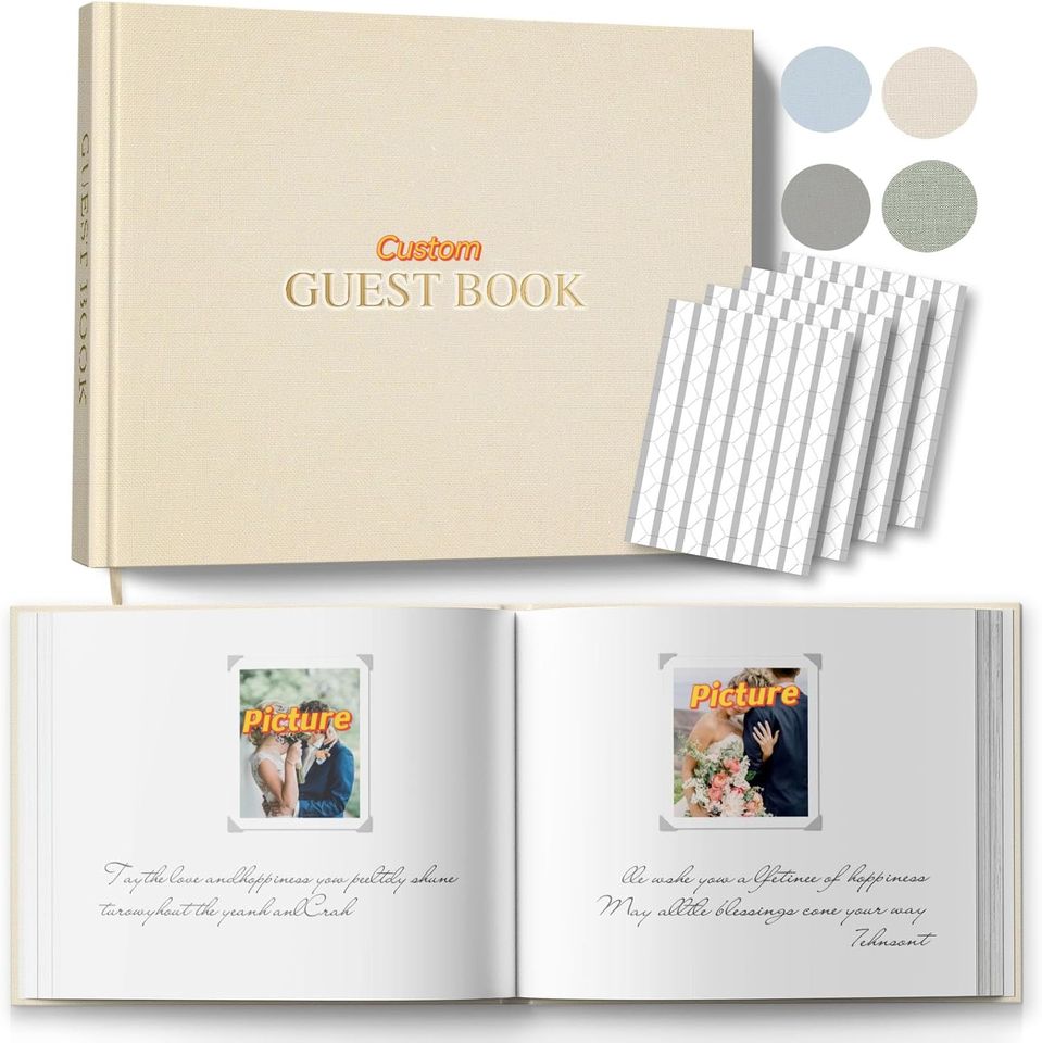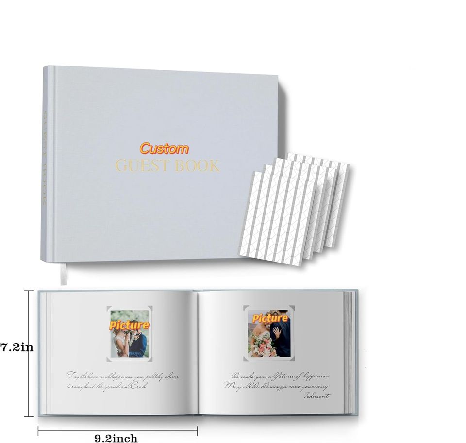 กระดาษฟอยล์สีทองตัวอักษรและรายละเอียดสั่งทำขนาด9x7 ''ลงชื่อเข้าใช้สมุดกระดาษหนา100หน้าสมุดปกแข็งงานแต่งงาน