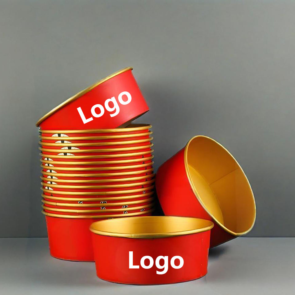 ถ้วยกระดาษกลมเคลือบทองสำหรับใส่ซูชิ แซนวิช สลัด แบบใช้แล้วทิ้ง ป้องกันการรั่วซึม กันน้ำ ย่อยสลายได้ทางชีวภาพ