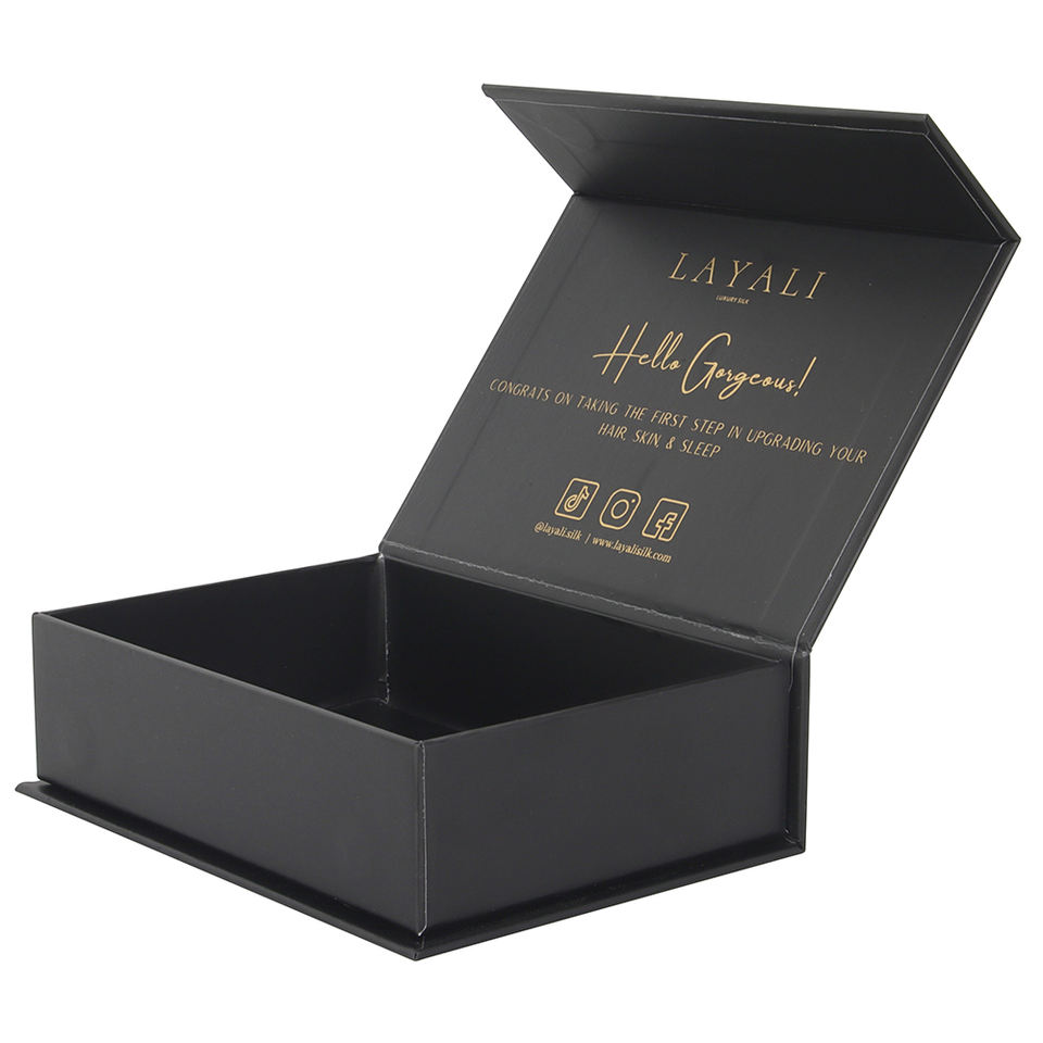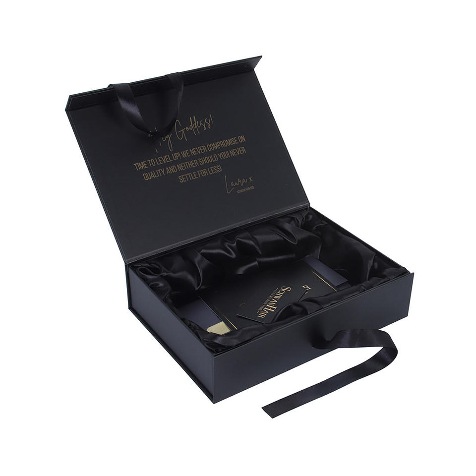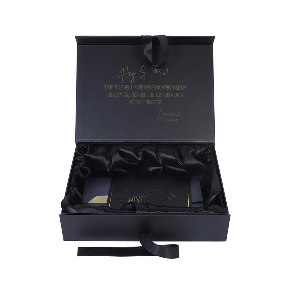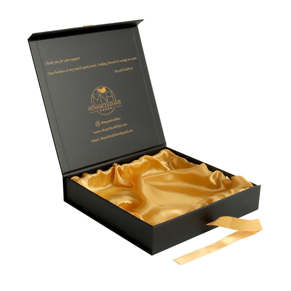 ซองฟอยล์สีทองแฮนด์เมดทรงสี่เหลี่ยมผืนผ้าแบบปรับแต่งได้กล่องของขวัญกระดาษแข็งแม่เหล็กเนื้อด้านสีดำ
