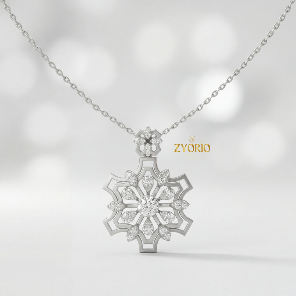 จี้เพชรรูปทรงเรขาคณิตลายดอกไม้ชุบทองคำขาว ดีไซน์หรูหราทันสมัย เหมาะสำหรับงานหมั้น งานแต่งงาน