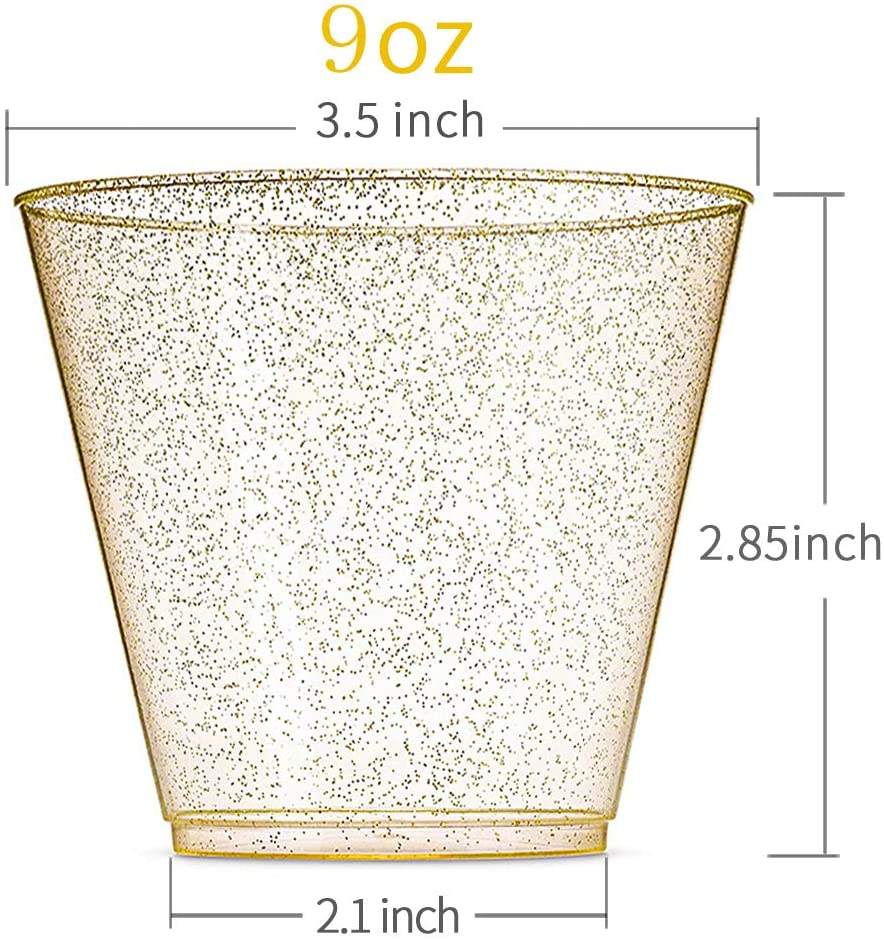 ชุดถ้วยชามแบบใช้แล้วทิ้งสีทองแวววาวแผ่นวัสดุ PS แบบวงกลมพร้อมเครื่องเงินสำหรับงานแต่งงาน