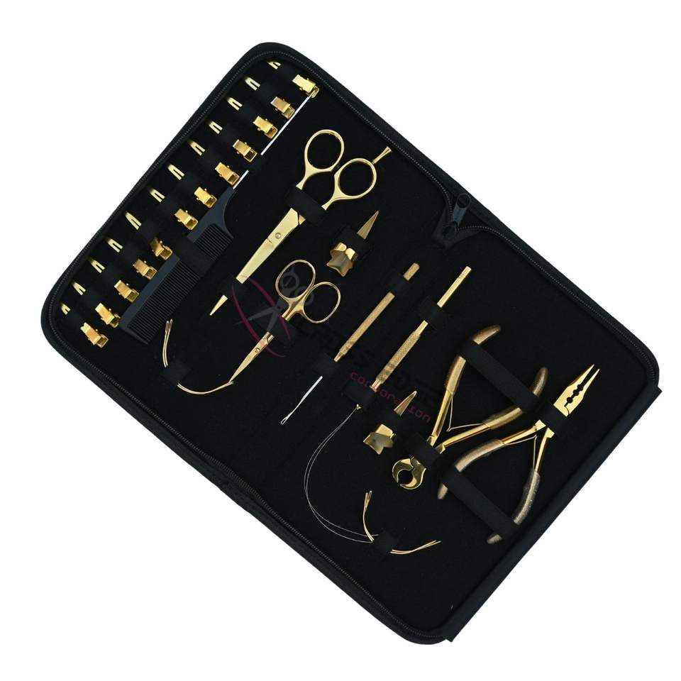 ชุดอุปกรณ์ต่อผมสีทอง 1 ชุด พร้อมเครื่องมือสแตนเลส