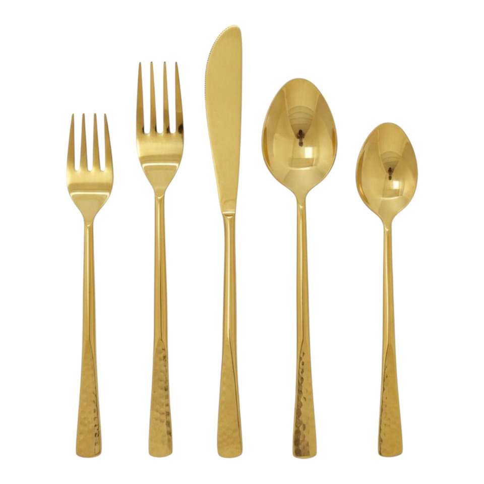 ชุดช้อนส้อมทองเหลืองตอกลาย 5 ชิ้น ของตกแต่งสำนักงานสุดหรูและอุปกรณ์เสริม เหมาะสำหรับห้องครัว ห้องรับประทานอาหาร งานเลี้ยงสังสรรค์