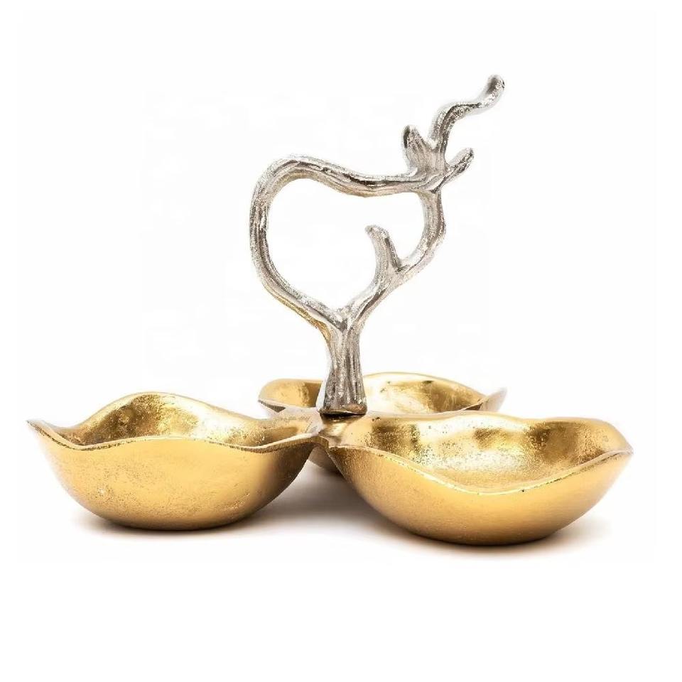 ชามคีบสีทองพร้อมลายใบเงินเหมาะสำหรับใส่ขนมขบเคี้ยวผลไม้เหมาะสำหรับตกแต่งโต๊ะอาหารในโรงแรมร้านอาหาร