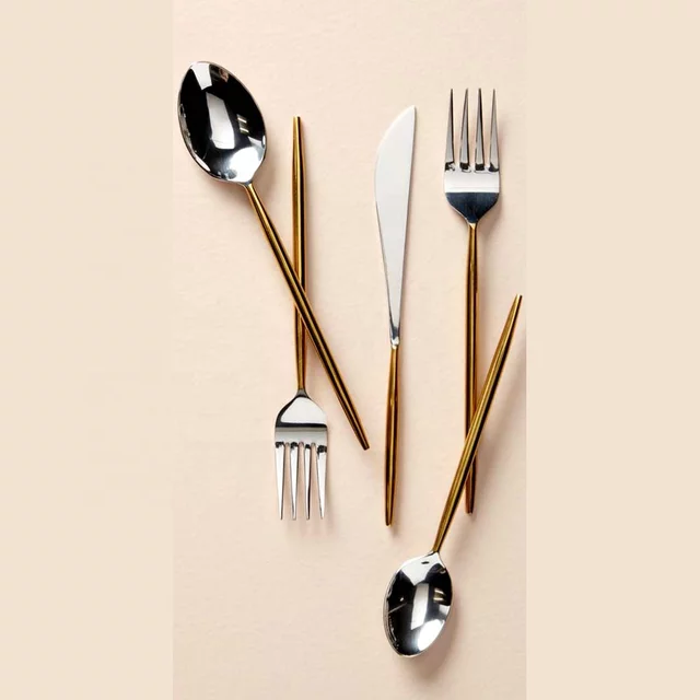 ชุดช้อนส้อมสแตนเลสสตีลชุบเงินด้ามทอง 5 ชิ้น สไตล์โมเดิร์น งานแฮนด์เมดสุดฮิต