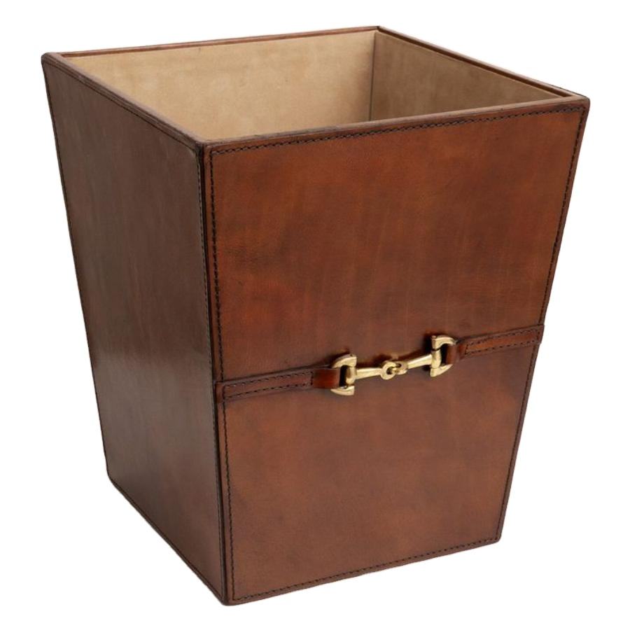 ถังขยะตั้งพื้นหนังแท้ทรงบิตสไตล์โกลด์ฮอร์ส พกพาสะดวก เป็นมิตรกับสิ่งแวดล้อม ราคาประหยัด
