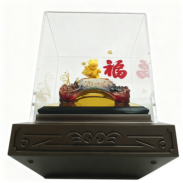 Gold Horse Figurine with Acrylic Case Collectible Souvenir for Horse Zodiac Year