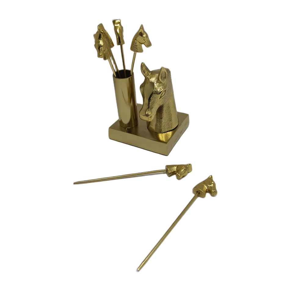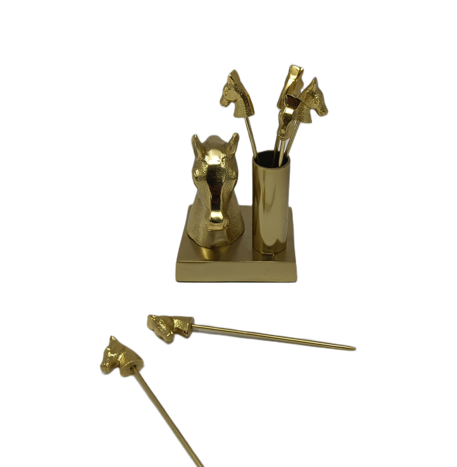 ชุดที่ใส่ไม้จิ้มฟันหัวม้าสีทองอุปกรณ์โต๊ะอาหารสุดหรูสำหรับงานปาร์ตี้และห้องครัวกระจกโลหะขัดเงา