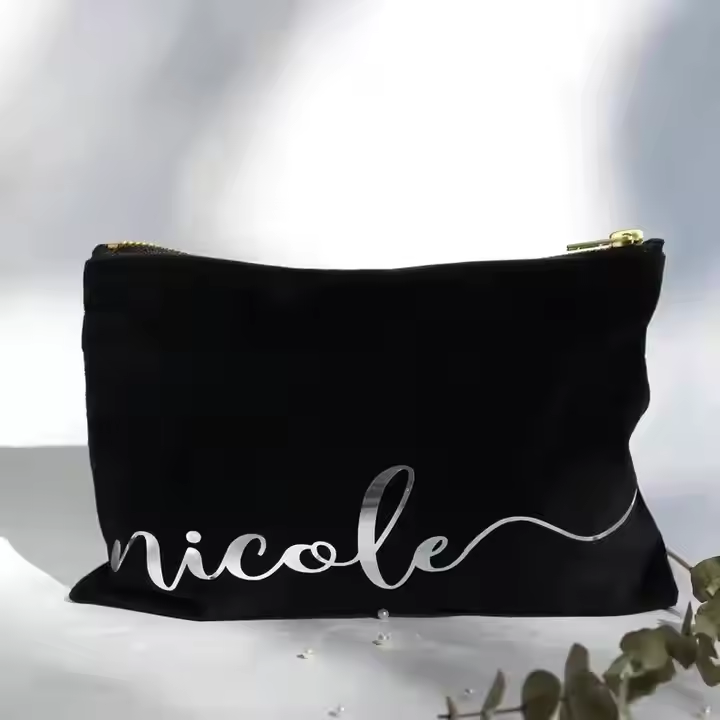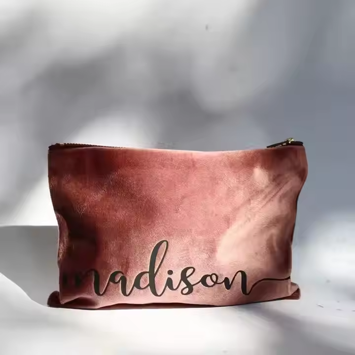 ชุดของขวัญเครื่องสำอางผ้าสักหลาดอ่อนสำหรับเพื่อนเจ้าสาวและแขกในงานแต่งงานชุดของขวัญเครื่องสำอางผ้าสักหลาดสีทองปั๊มร้อนโลโก้ตามสั่ง