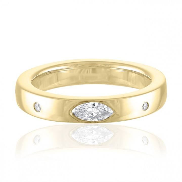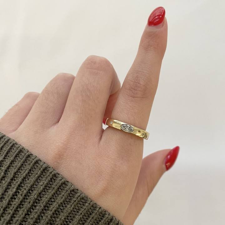 เครื่องประดับทองแหวนช่างฝีมือ14K สีเหลืองทองมาร์คีส์และรอบตัดหนามเตยการตั้งค่าเพชรของขวัญแหวนเพชรสำหรับเธอ