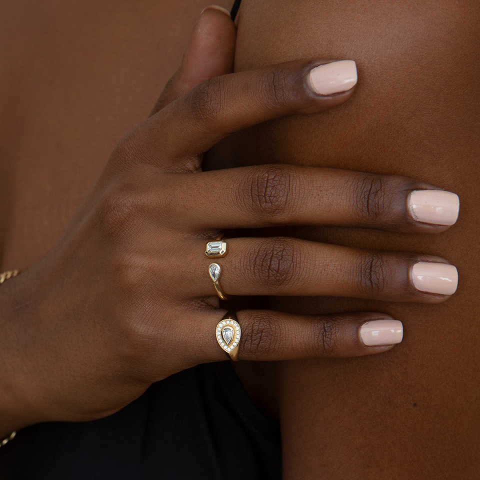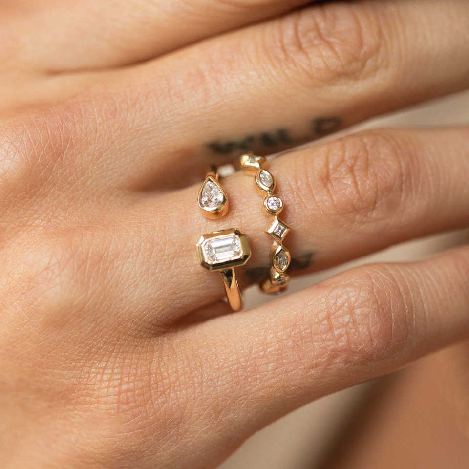 แหวนแต่งงานเพชรทรงลูกแพร์และทรงมรกต ทองคำขาว ประดับเพชร VVS ดีไซน์เปิด สำหรับผู้หญิง
