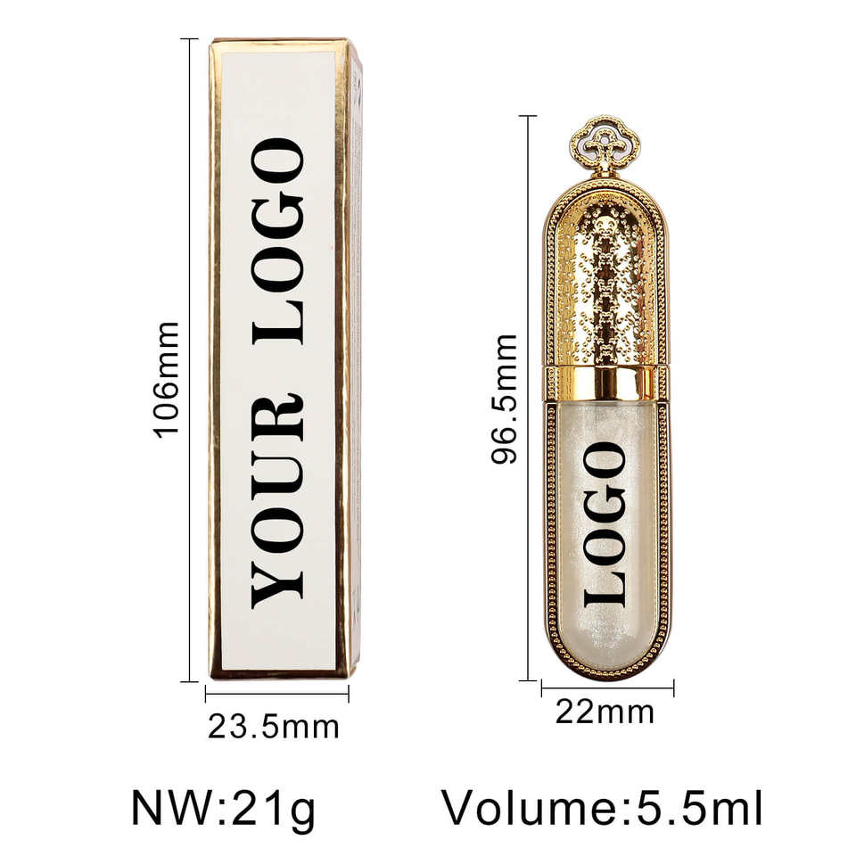 ลิปกรอสสีทองลิปกลอสแบบใสกันน้ำฉลากส่วนตัวลิปสติกเปล่าลิปกรอสสวยวีแกน