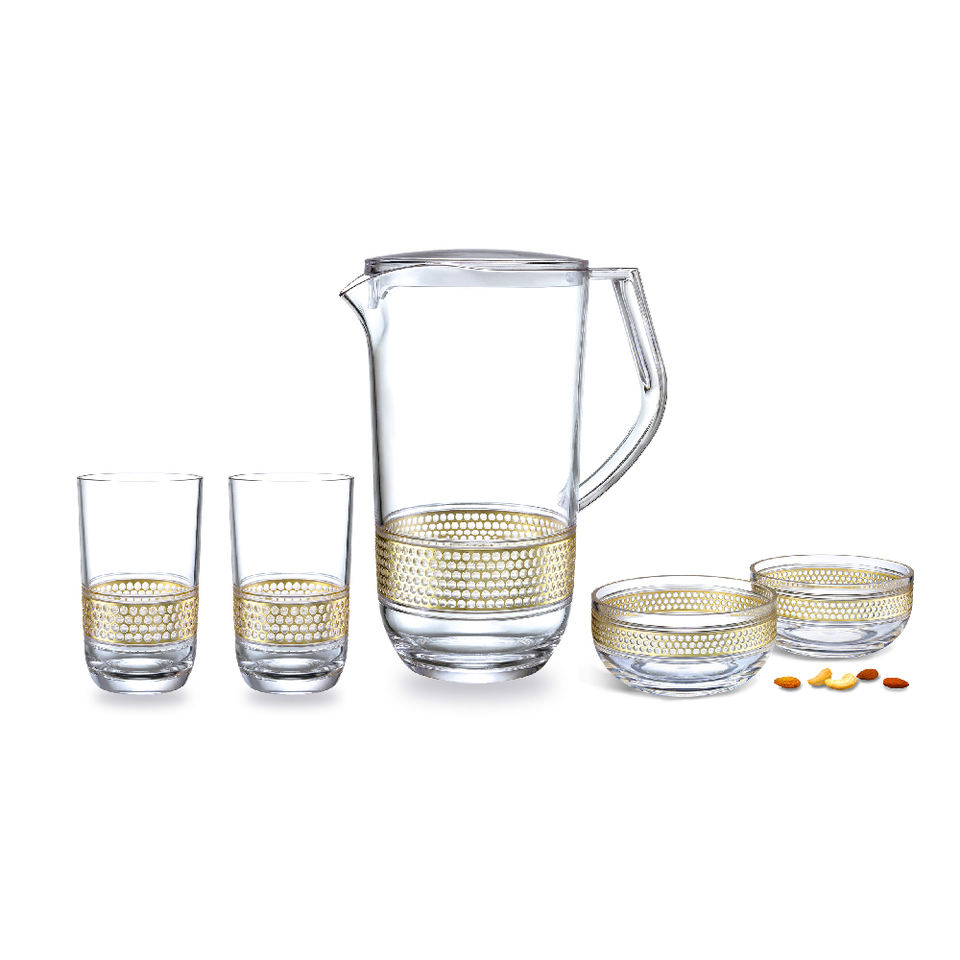 เหยือกใส่เครื่องใช้บนโต๊ะอาหารมีห่วงสีทองแก้วชามถั่วถาดเสิร์ฟ
