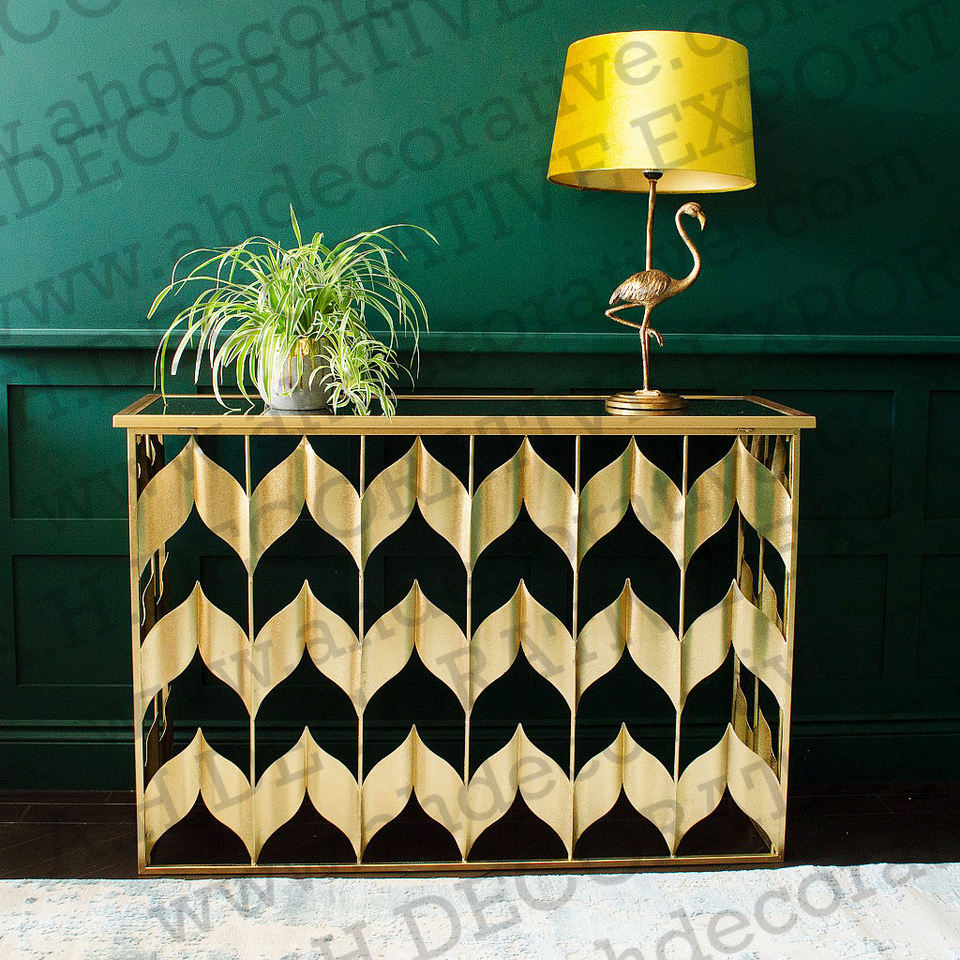 ทองหรูหราคอนโซลตารางด้านบนโคมไฟตั้งโต๊ะสำหรับห้องนั่งเล่นและโรงแรมที่มีคุณภาพสูงตกแต่งสำหรับขาย