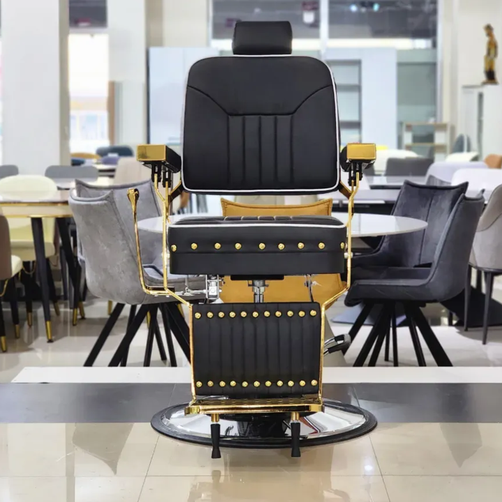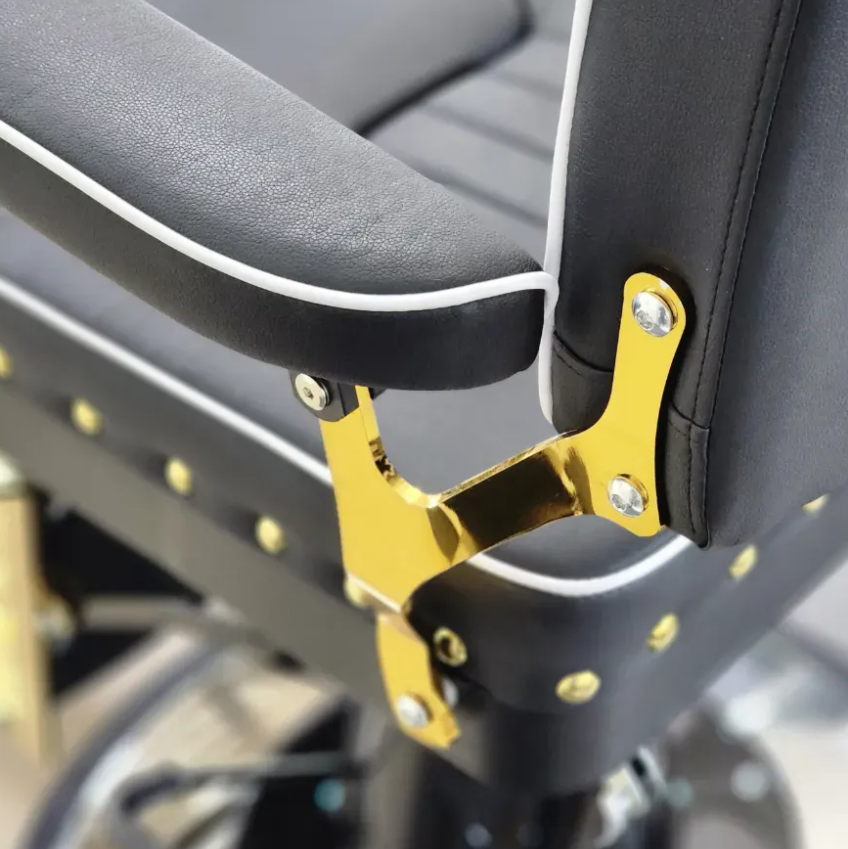 เก้าอี้ตัดผมผู้ชายสีทองเก้าอี้ตัดผมหรูหราสีดำคลาสสิกสีดำ