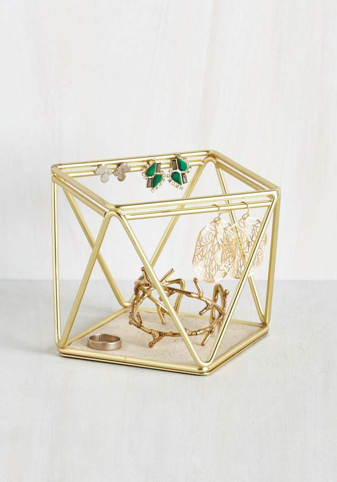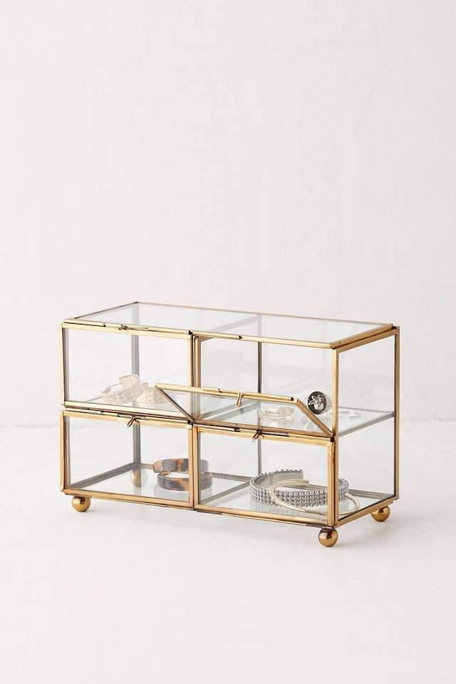 กล่องใส่เครื่องประดับโลหะสีทองและแก้ว ตกแต่งสไตล์หีบสมบัติ ทนทาน แข็งแรง ปลอดภัย สำหรับเก็บเครื่องประดับและของที่ระลึก