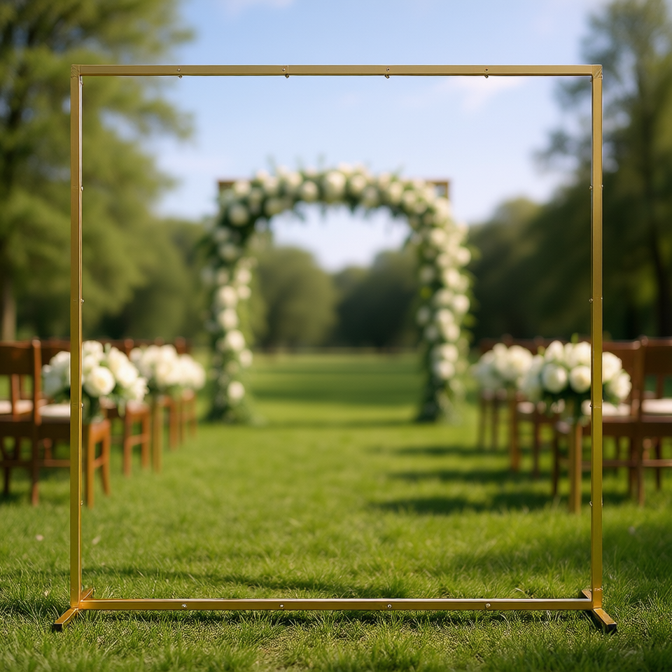 ฉากหลังโค้งโลหะสีทอง ขนาด 6.6 ฟุต รูปทรงสี่เหลี่ยม ประกอบง่าย สำหรับตกแต่งพิธีแต่งงาน