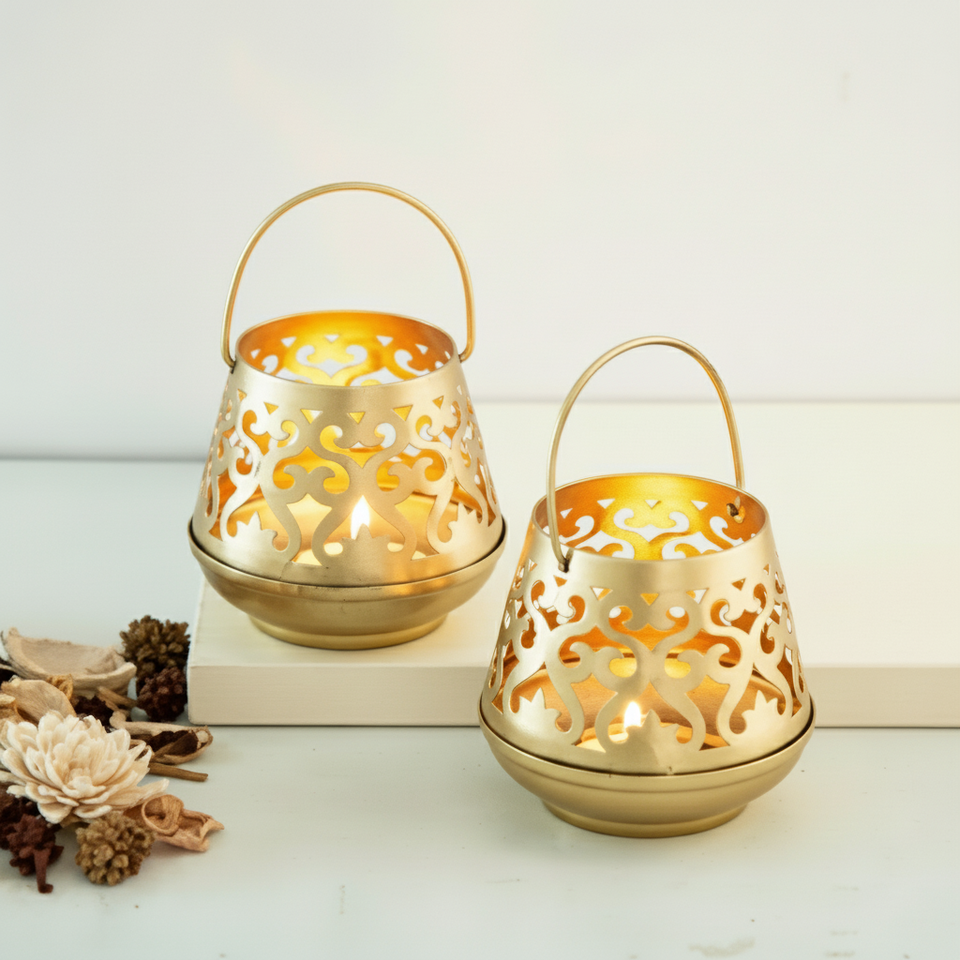 เชิงเทียนโลหะสีทองสำหรับเทียนทีไลท์ของตกแต่งโต๊ะเทศกาลงานแต่งงานและของตกแต่งบ้าน