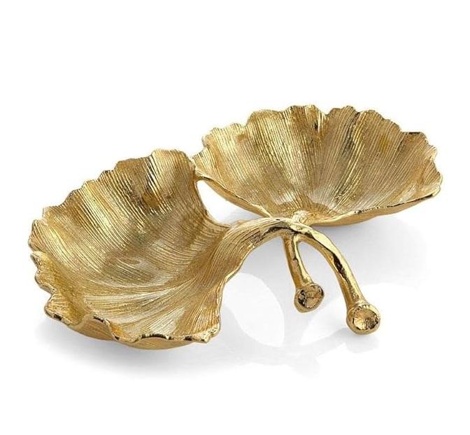 ถาดเสิร์ฟช็อคโกแลตรูปใบไม้สำหรับตกแต่งโลหะสีทองสำหรับวางตรงกลางและบนโต๊ะ