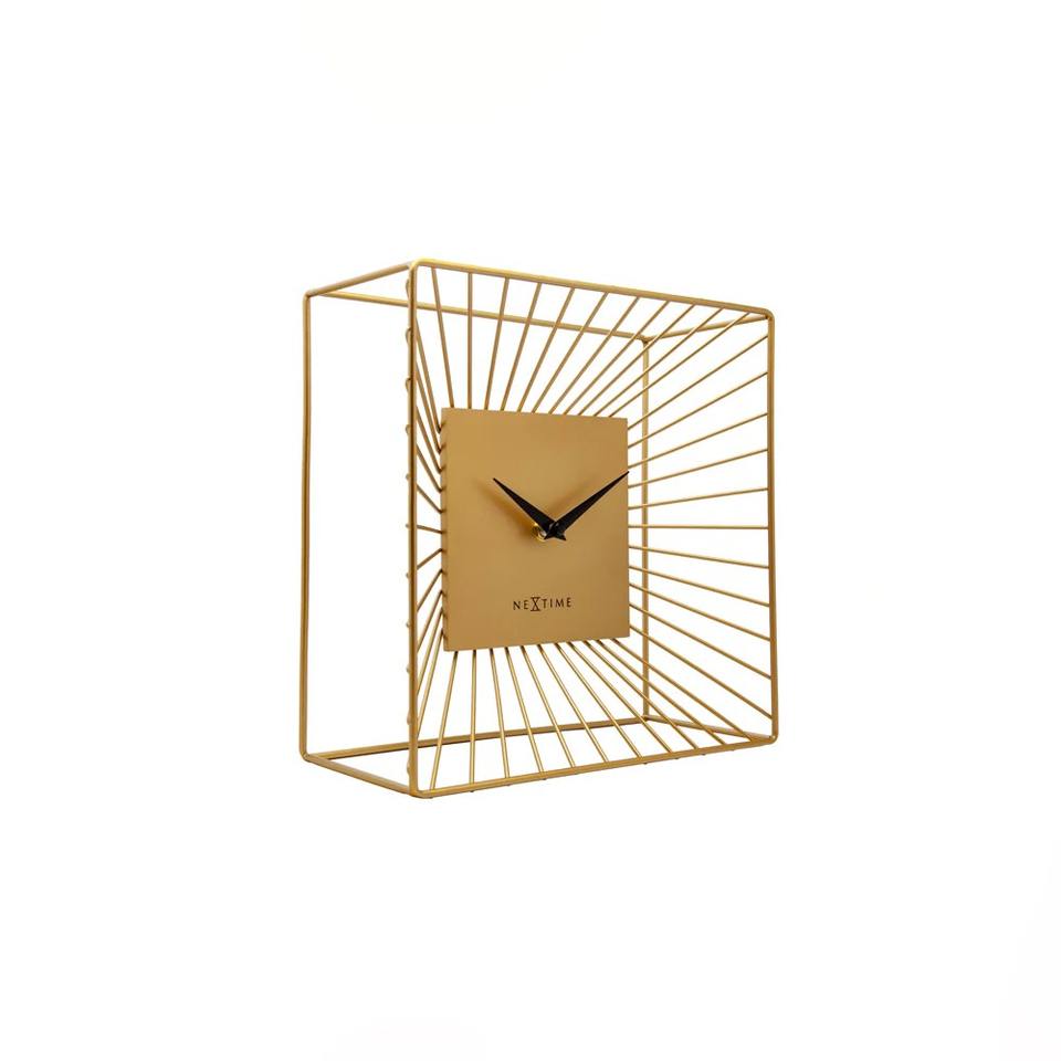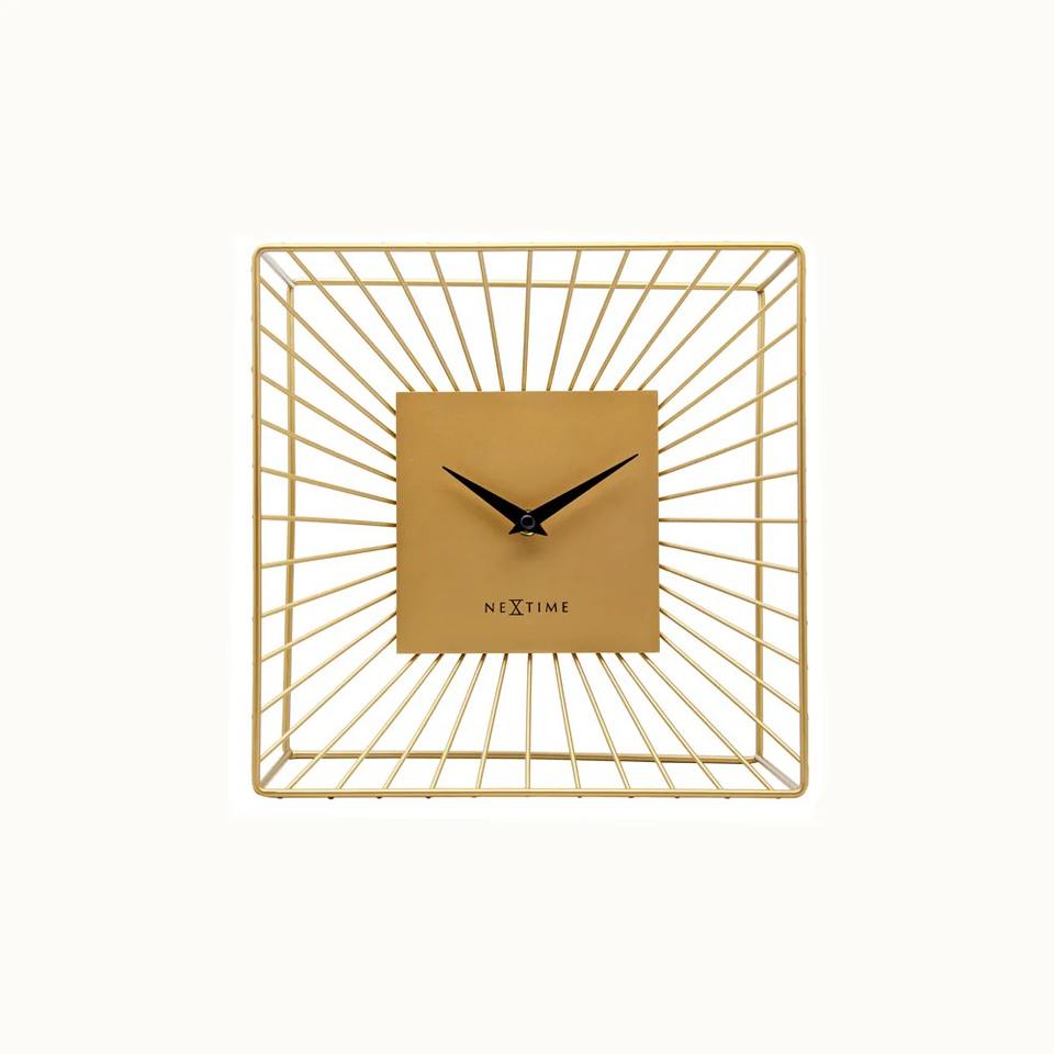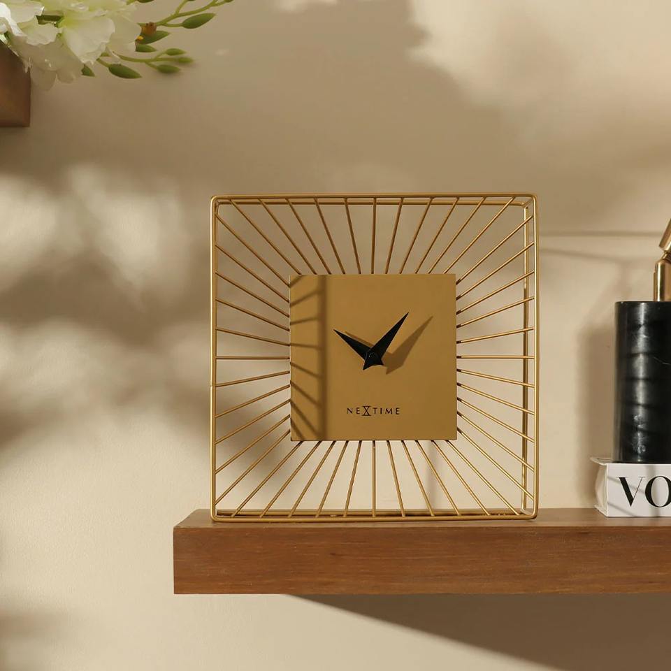 นาฬิกาตั้งโต๊ะสำหรับตกแต่งโต๊ะกาแฟทำจากโลหะสีทองภายในห้องนั่งเล่นร่วมสมัยหรูหราโดดเด่นจากอินเดีย