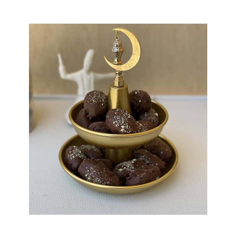 ชามสองชั้นลายโลหะสีทอง สำหรับใส่ผลไม้และช็อกโกแลต ขายส่งและจัดจำหน่าย