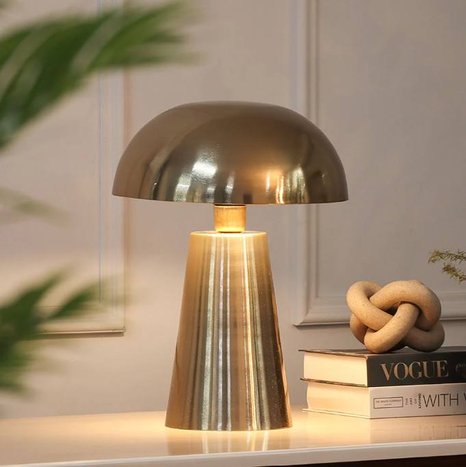 โคมไฟตั้งโต๊ะทรงโดมโลหะสีทองพร้อมฐานทรงกรวย | ฐานหลอดไฟ E26/E27 | ดีไซน์เอเชียแบบเรียบง่าย | ไฟตกแต่งบ้านแบบ DIY