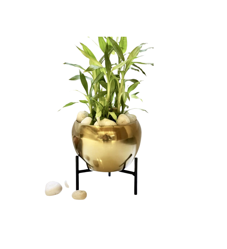 กระถางดอกไม้โลหะสีทอง ดีไซน์หรูหรา โทนสีทองเหลือง สำหรับตกแต่งสวนทั้งภายในและภายนอกอาคาร