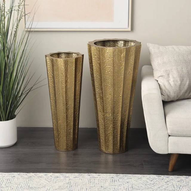 แจกันตั้งพื้นทรงสูงทำจากโลหะสีทองแจกันตกแต่งบ้านสำหรับตกแต่งห้องนั่งเล่นแจกันสีทองที่ทันสมัย