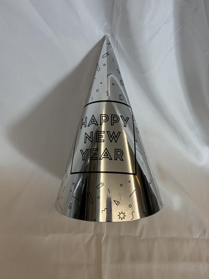 หมวกปาร์ตี้รูปกรวยสีทองเมทัลลิก สวมใส่แล้วทิ้ง สำหรับงานฉลองปีใหม่ วัสดุทำจากกระดาษ เหมาะสำหรับงานเลี้ยงส่งท้ายปีเก่าและงานปาร์ตี้วันปีใหม่