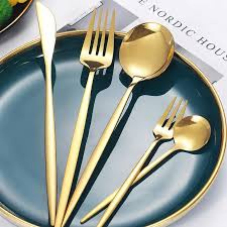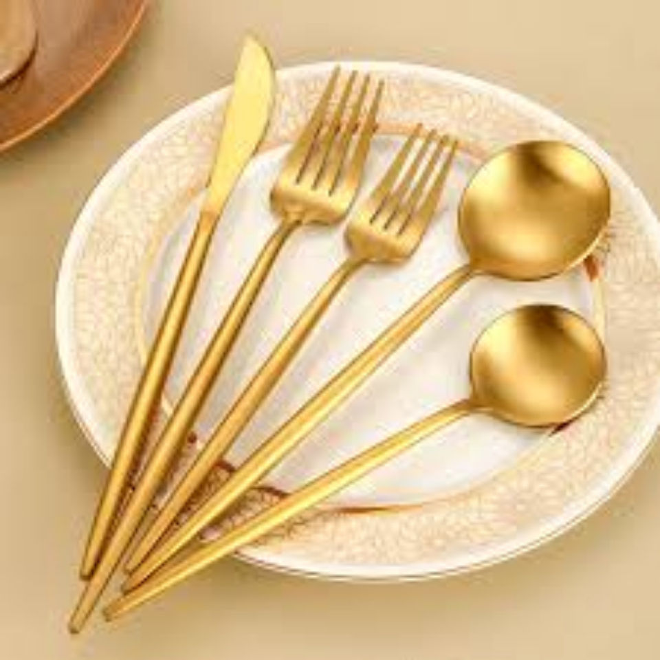 ชุดช้อนส้อมสแตนเลสสตีลกระจกสีทองชุดช้อนส้อมเครื่องเงิน24ชิ้นสไตล์คลาสสิกแบบทึบสำหรับงานแต่งงาน