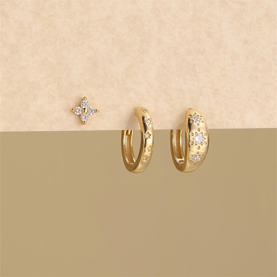 ชุดต่างหูห่วงประดับเพชร CZ รูปโคลเวอร์มาร์ควิสสีทอง รุ่น S925