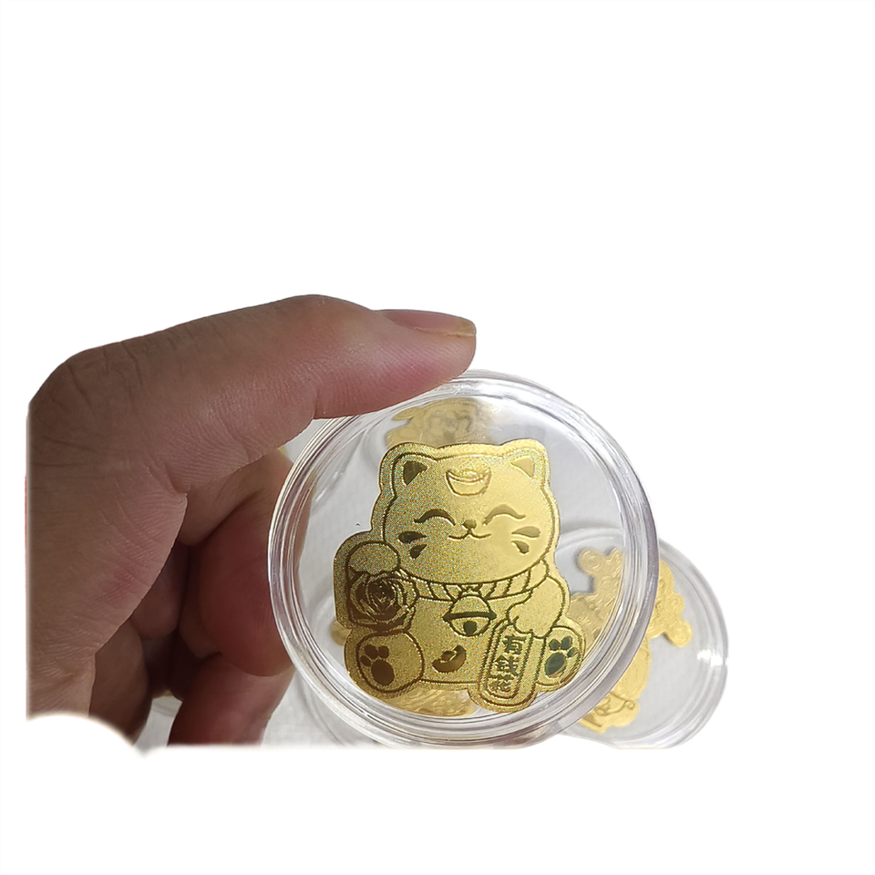 สติ๊กเกอร์ติดโทรศัพท์มือถือสีทองเพื่อดึงดูดความมั่งคั่งอย่างฉับพลัน แมวนำโชค กำลังมาจากทุกทิศทาง เงินทันที T