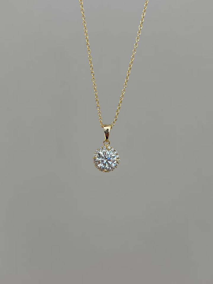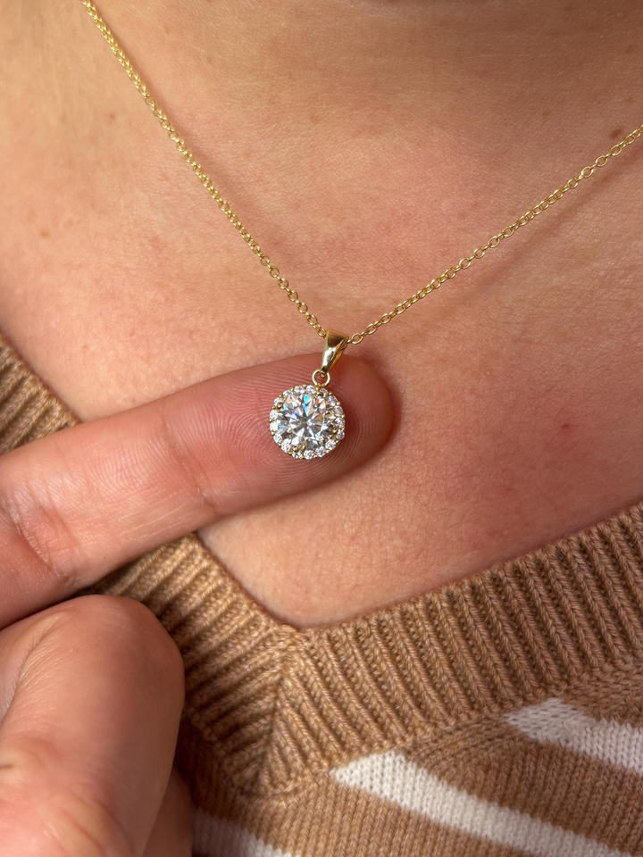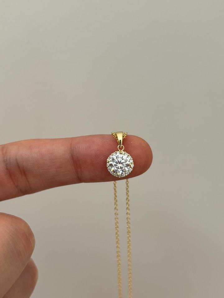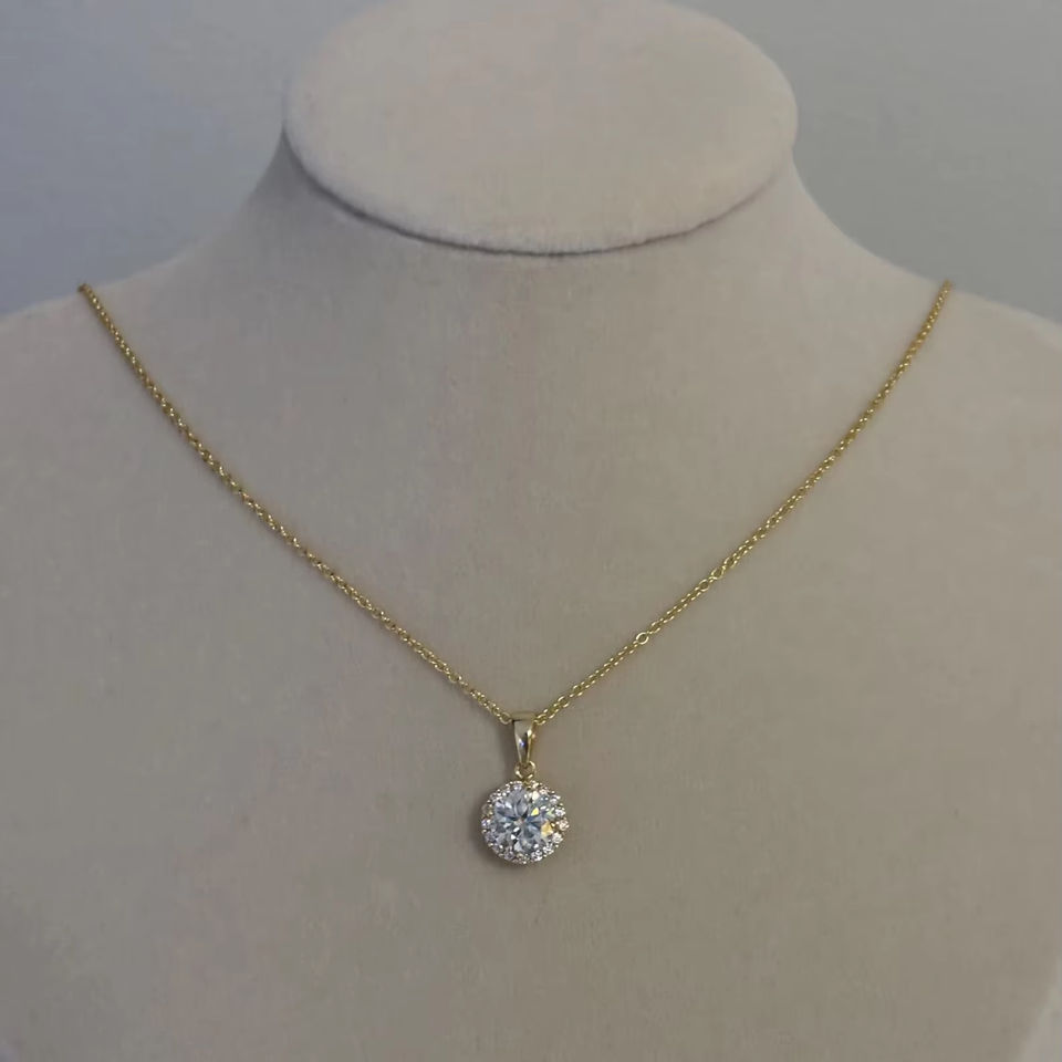 สร้อยคอเพชรมอยส์ซอไนต์สีทองสร้อยคอเพชร9มม. สร้อยคอเพชรโมอิสซาไนต์สำหรับเธอสร้อยคอเพชรเม็ดกลม