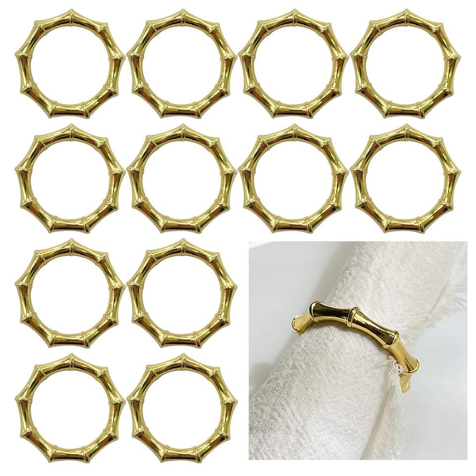 ชุดแหวนผ้าเช็ดปากสีทองชุดแหวนผ้าเช็ดปากไม้ไผ่12ชิ้นที่ยึดห่วงโลหะสำหรับตกแต่งโต๊ะงานเลี้ยงอาหารค่ำงานแต่งงาน