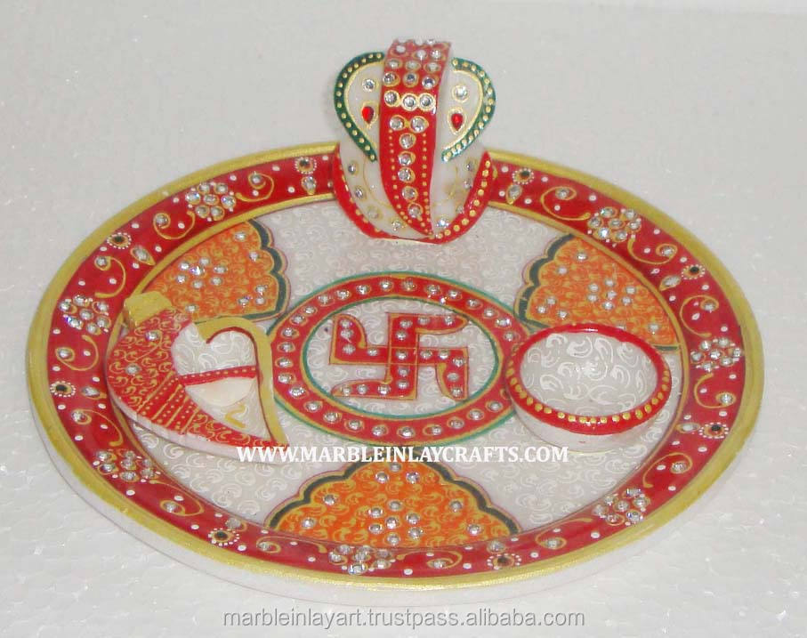 ชื่อผลิตภัณฑ์:ภาพวาดหินอ่อนสีทองตกแต่ง Pooja Thali